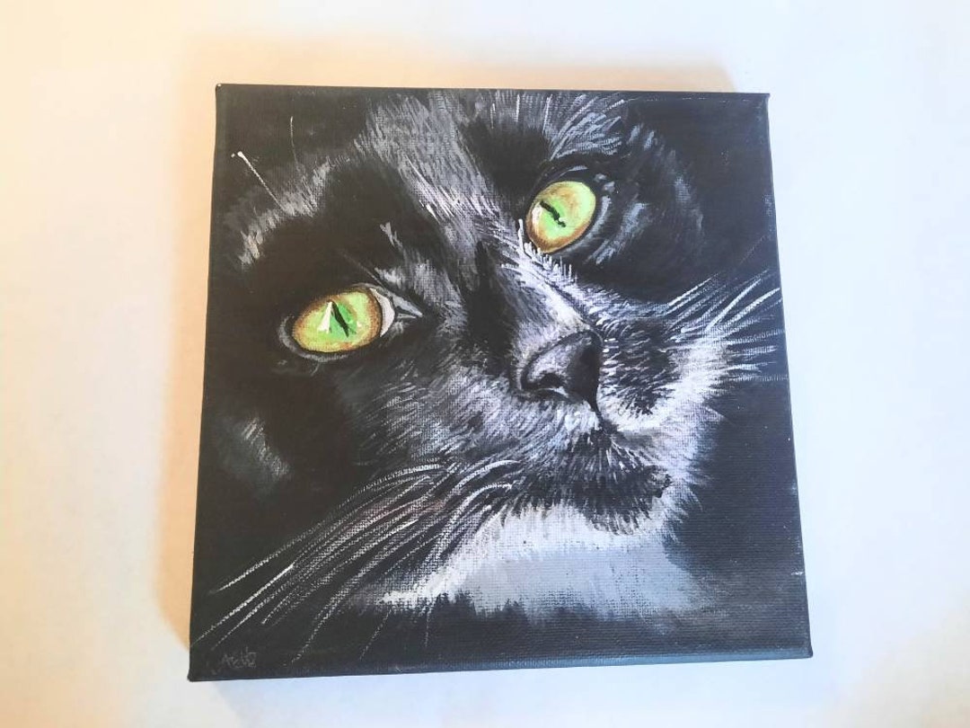 Cat Painting Original Cat Portrait Cat Art Tuxedo Cat Etsy Uk